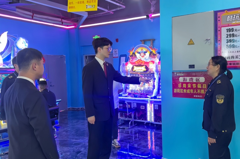 针对可能影响未成年人健康成长的校外环境,丹江口市检察院积极延伸监督触角。近日,市未保中心联合文旅局、公安局等单位,对辖区内网吧、游戏厅、KTV等经营性娱乐场所开展联合专项检查。现场,检察人员切实履行监督职责,密切关注执法过程中的每一个环节,督促相关执法部门依法查处违规接纳未成年人、未悬挂禁入标志等问题,确保《未成年人保护法》中关于社会保护的相关规定落到实处,合力清除危害未成年人身心健康的隐患,净化其课余生活与成长环境。