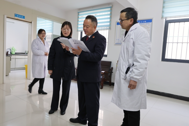在医务室,检查组详细询问了在押人员近期健康状况,查看了医疗记录、药品管理台账,重点了解了患病在押人员的诊治、用药及跟踪观察情况,强调要严格落实医疗卫生制度,保障在押人员患病能得到及时有效诊治。